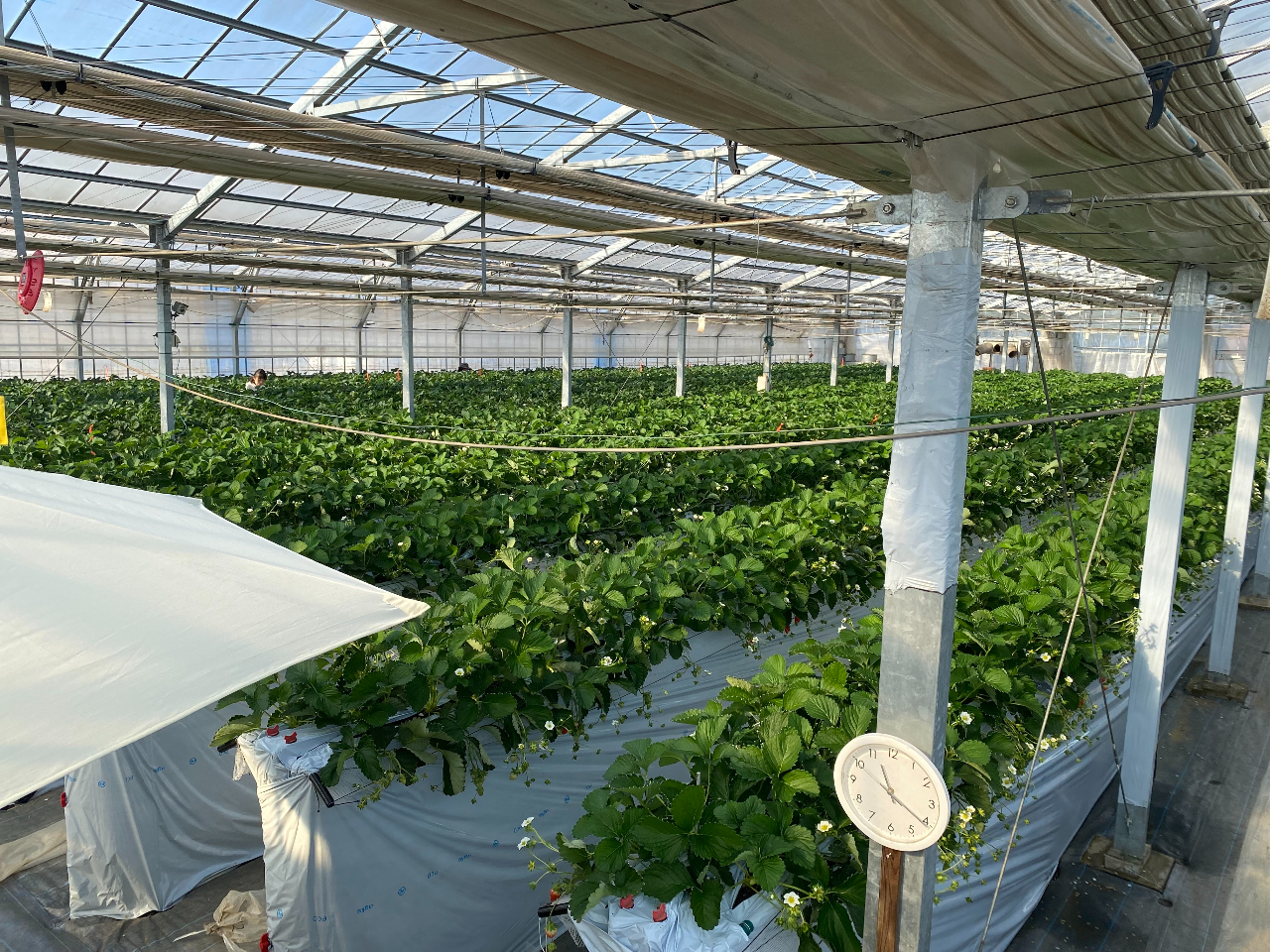 ハウス内は通路幅も広く車いすでもOK!高設栽培なのでスムーズに収穫♪