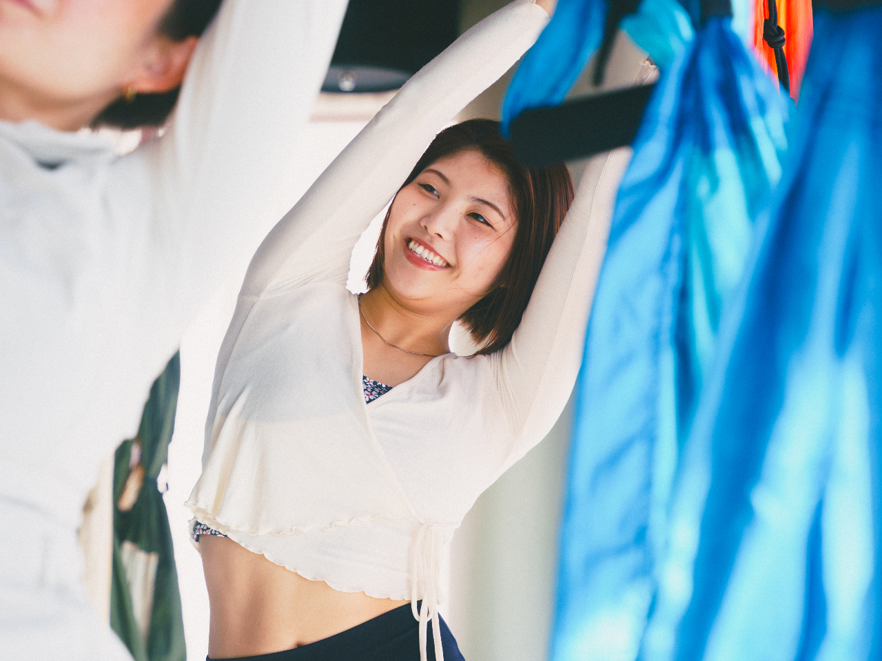 輝く太陽のエネルギーを浴びながらピラティスやヨガ、シルクサスペンションでリフレッシュ、エネルギーチャージが出来ます。