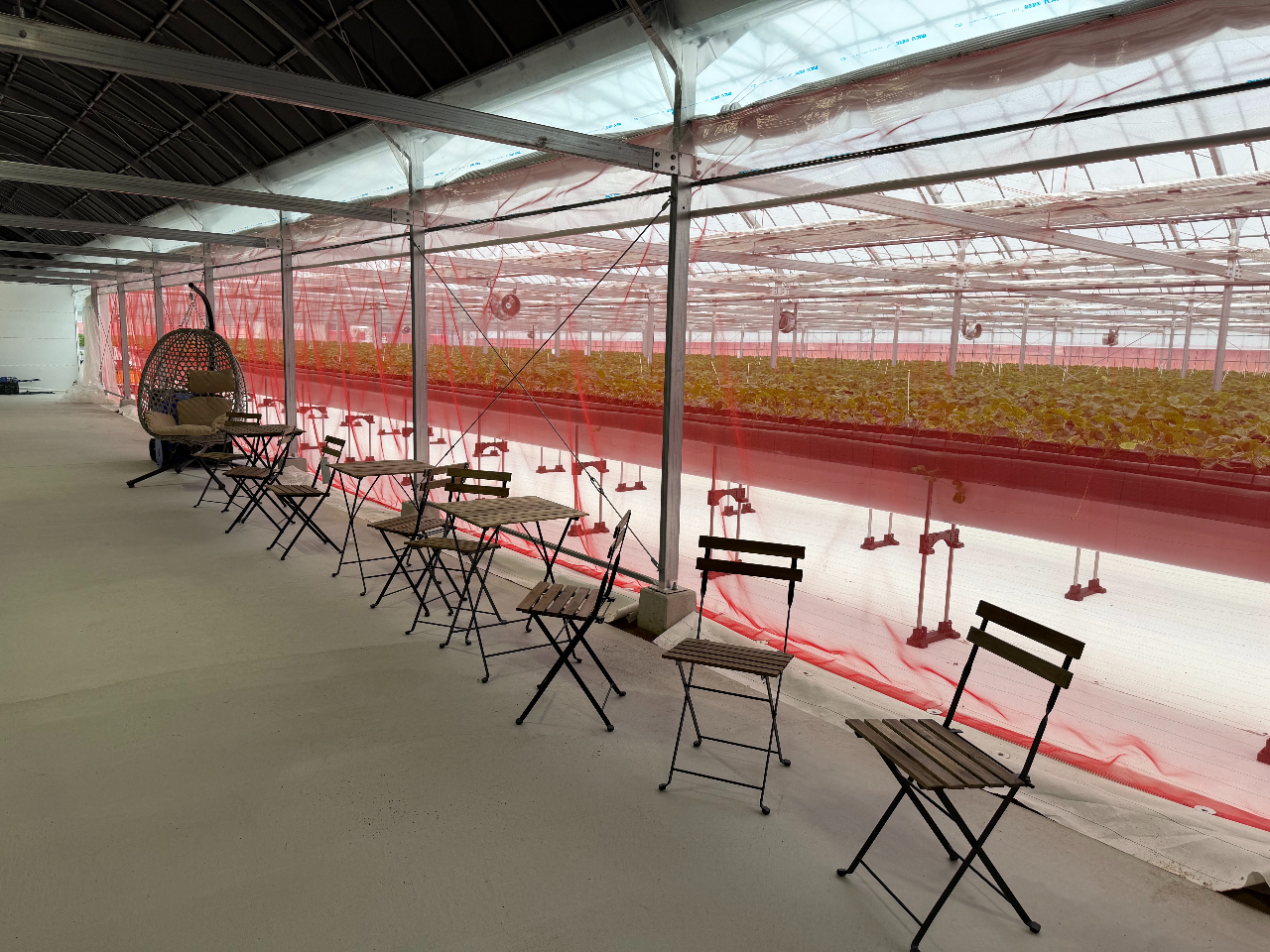 \ハウス内に休憩スペースを設置!小さなお子さまやご高齢の方も安心です/