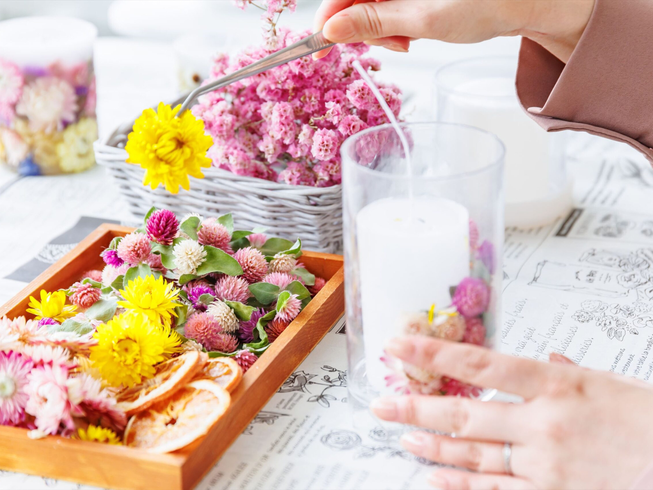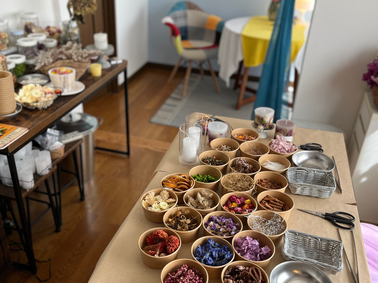■ドライフラワーやドライフルーツをふんだんに使ったボタニカルキャンドルが作れます♪■雨の日でも安心!■自宅の一室でのアットホームな隠れ家アトリエで安心して楽しめます♪