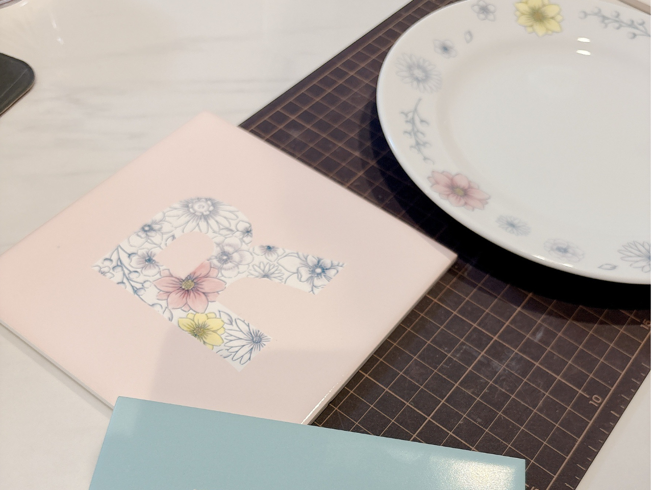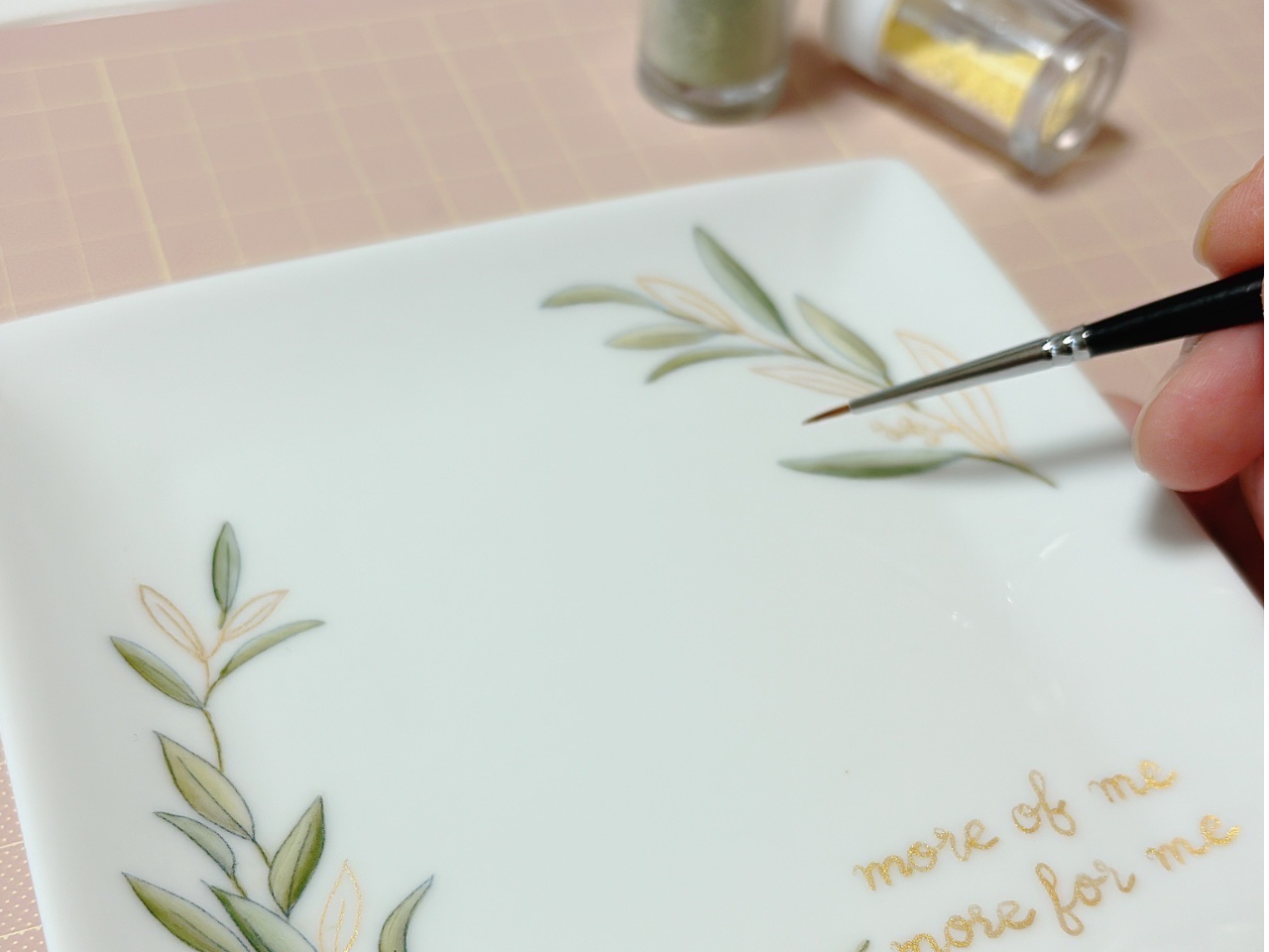 体験では、プレートに専用のポーセラーツ絵の具を使ってデザイン。