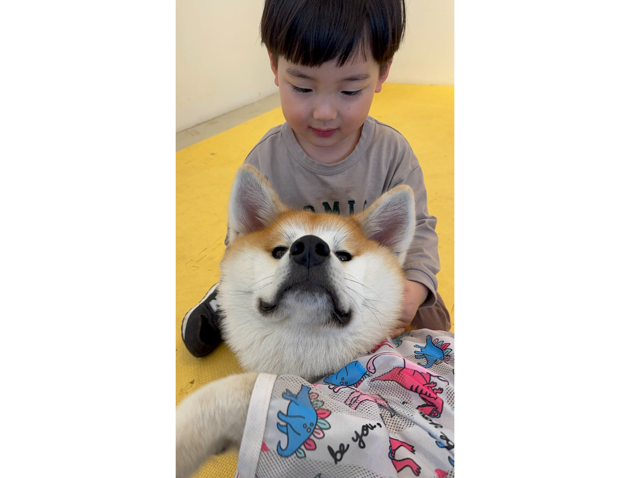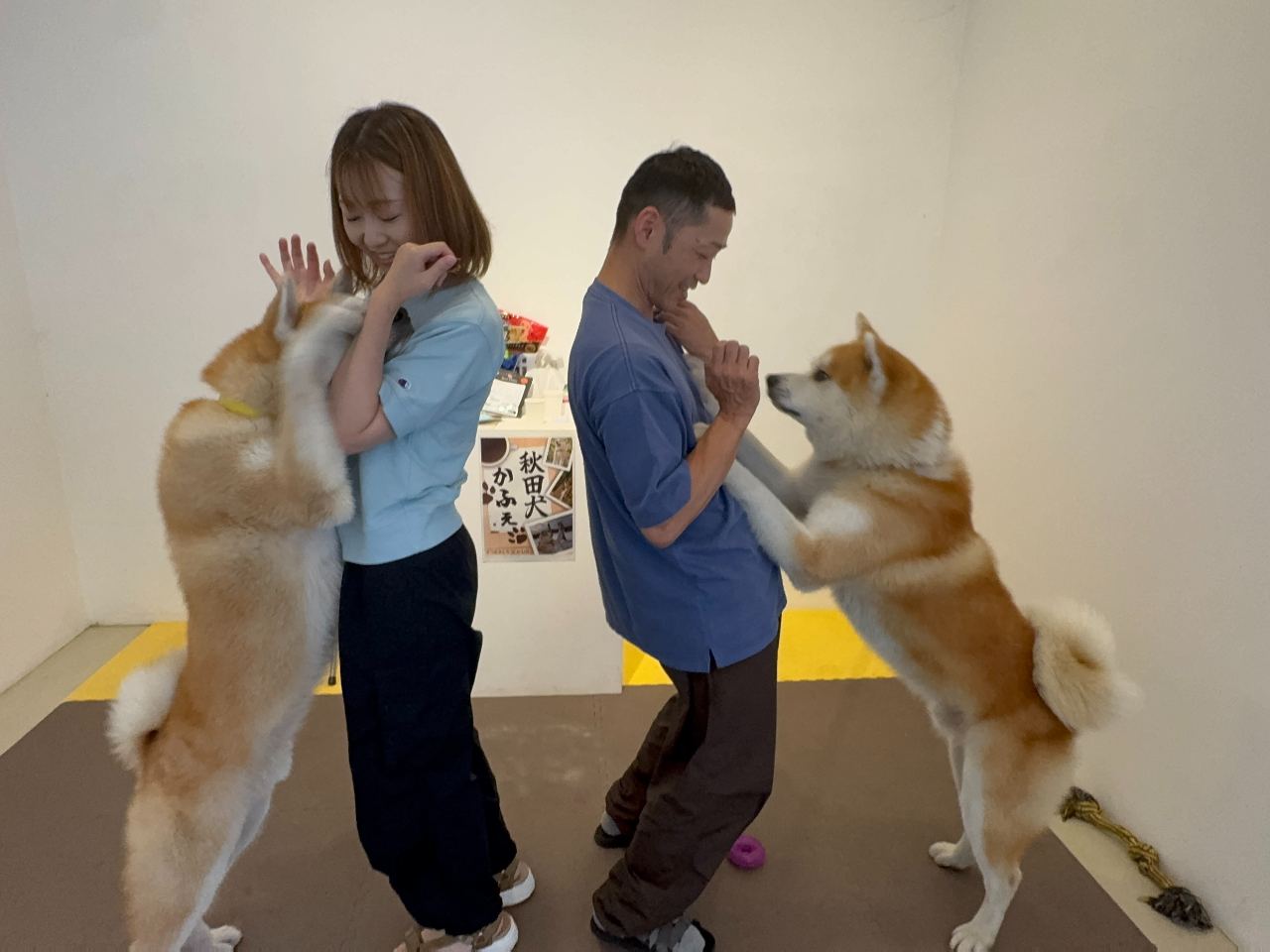 \スリスリもできちゃう♪秋田犬ファンにはたまらない幸せなひととき〜!/