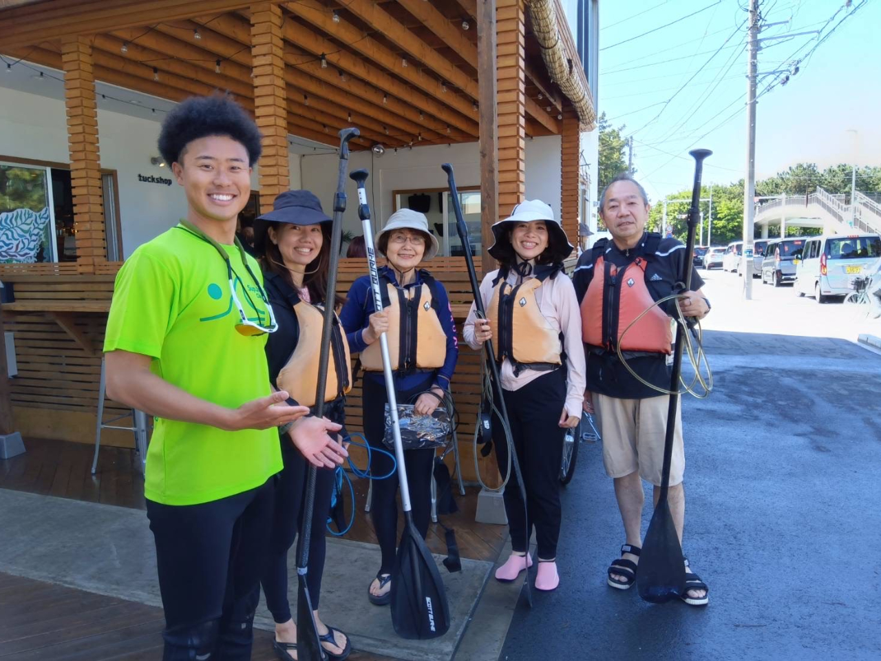 まずは施設で受付後、着替えを済ませて陸上でSUPの基本操作を丁寧にレクチャー。
