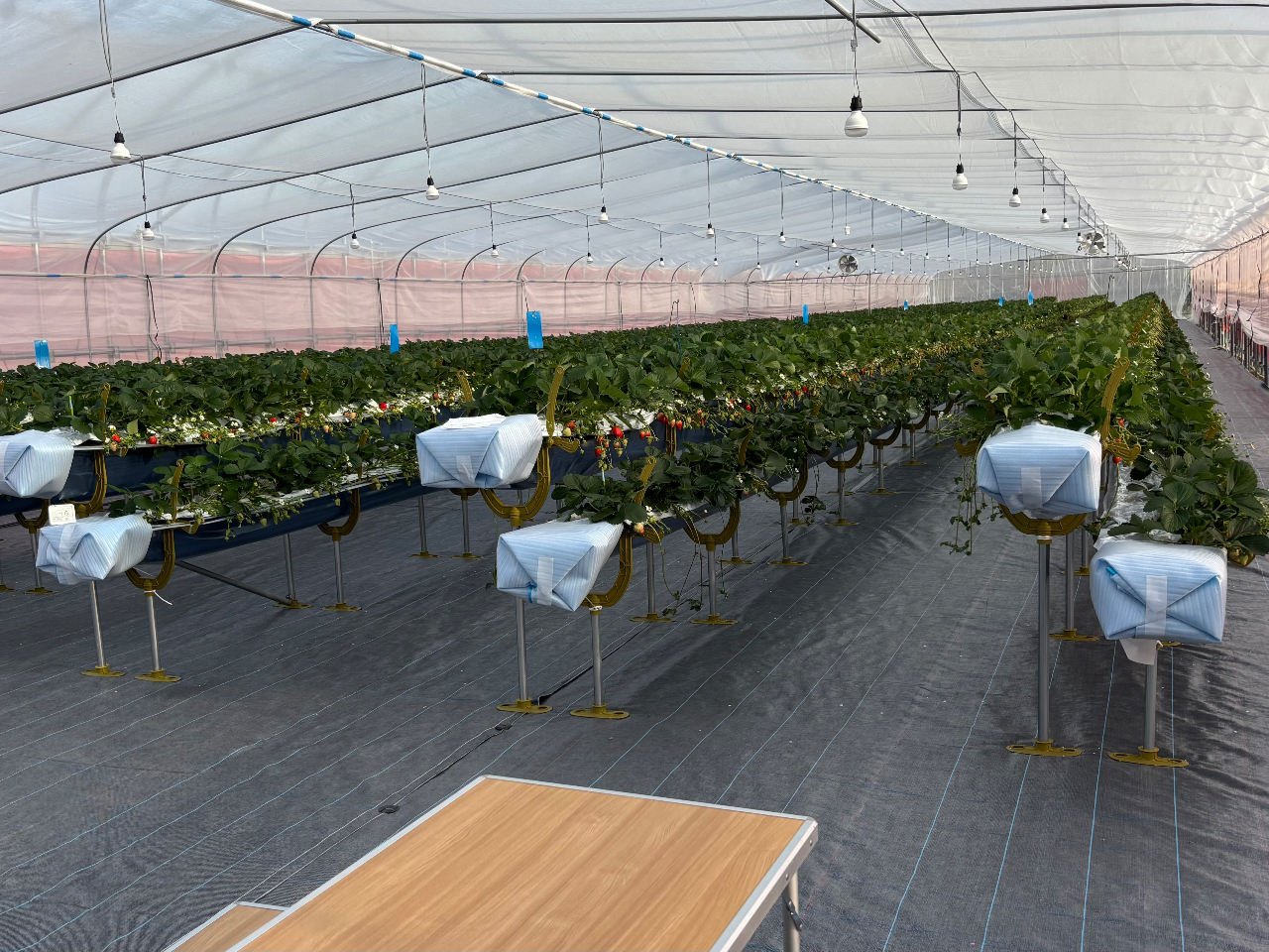 4/1〜【彦根いちご狩り/NEW施設で40分間新鮮ないちご、最大7品種が食べ放題♪】エリア初!2段ベンチ式!幅広設計でベビーカーや車いすでもいちご狩り可能!綺麗でバリアフリーな水洗トイレも完備☆