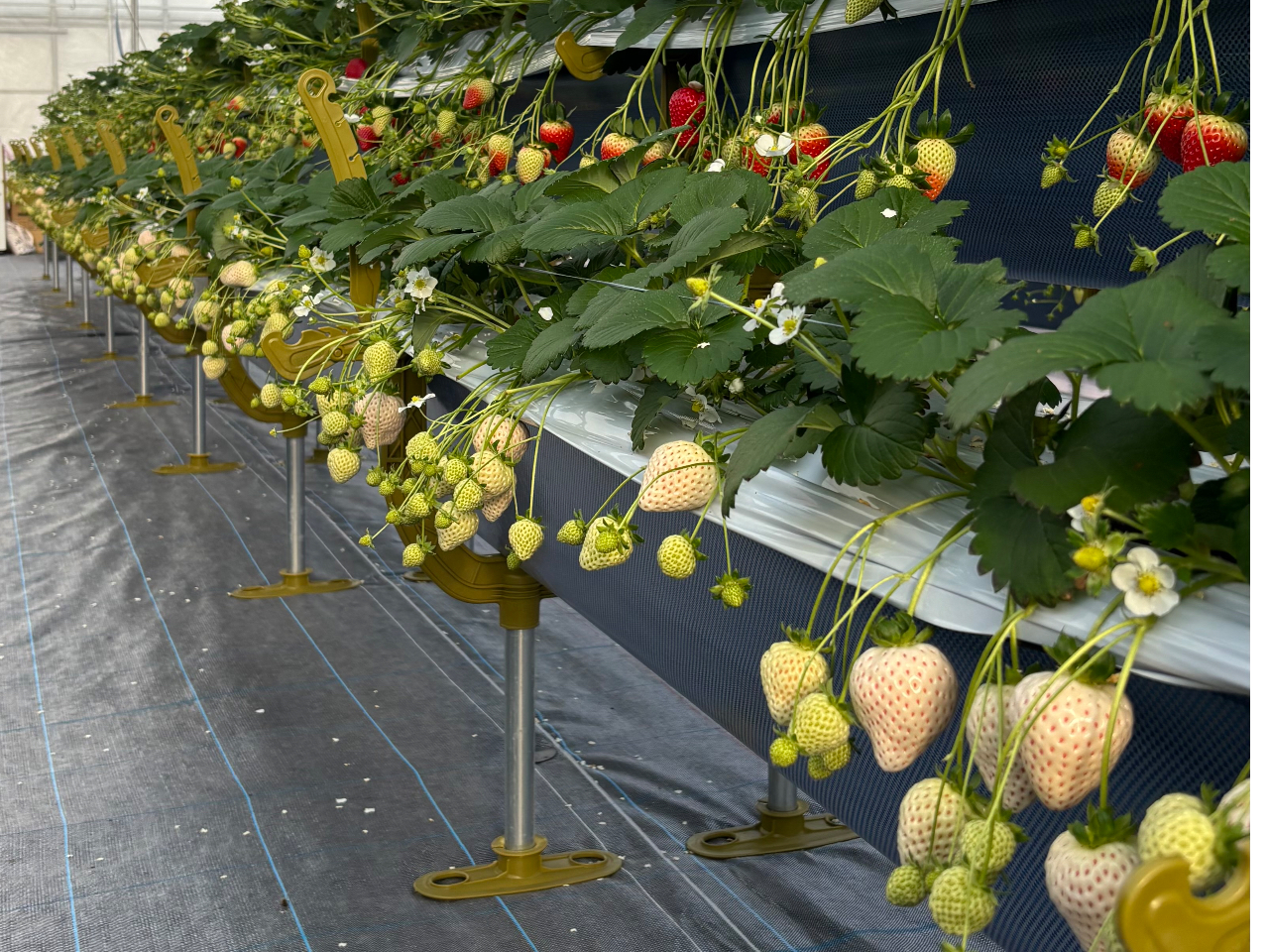 エリア初の2段ベンチを採用しており、小さなお子様でも目の前にいちごが見えるベンチ高さ!