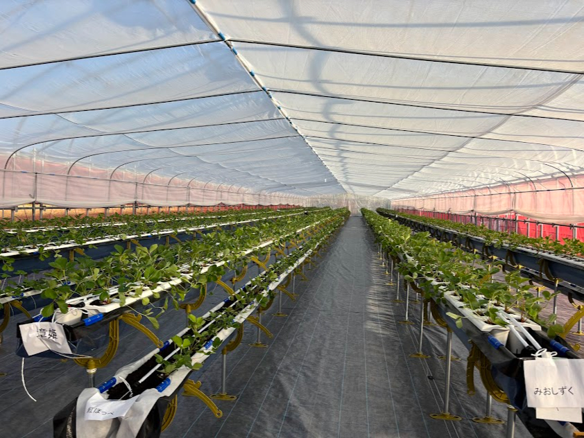 【彦根いちご狩り/NEW施設で40分間新鮮ないちご、最大7品種が食べ放題♪】エリア初!2段ベンチ式!幅広設計でベビーカーや車いすでもいちご狩り可能!綺麗でバリアフリーな水洗トイレも完備☆