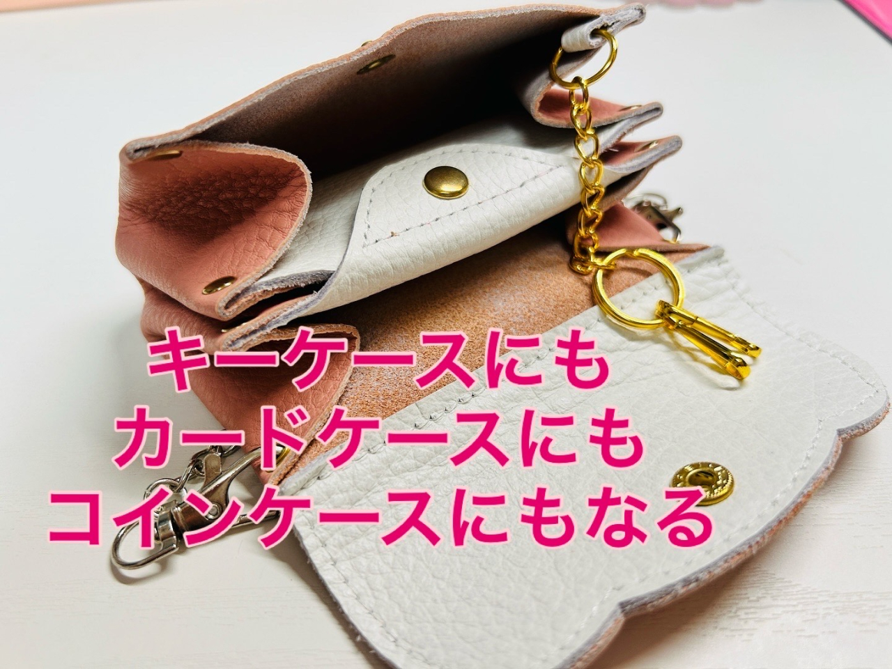キーケースにもコインケースにもカードケースにもなる本革ミニポーチです。