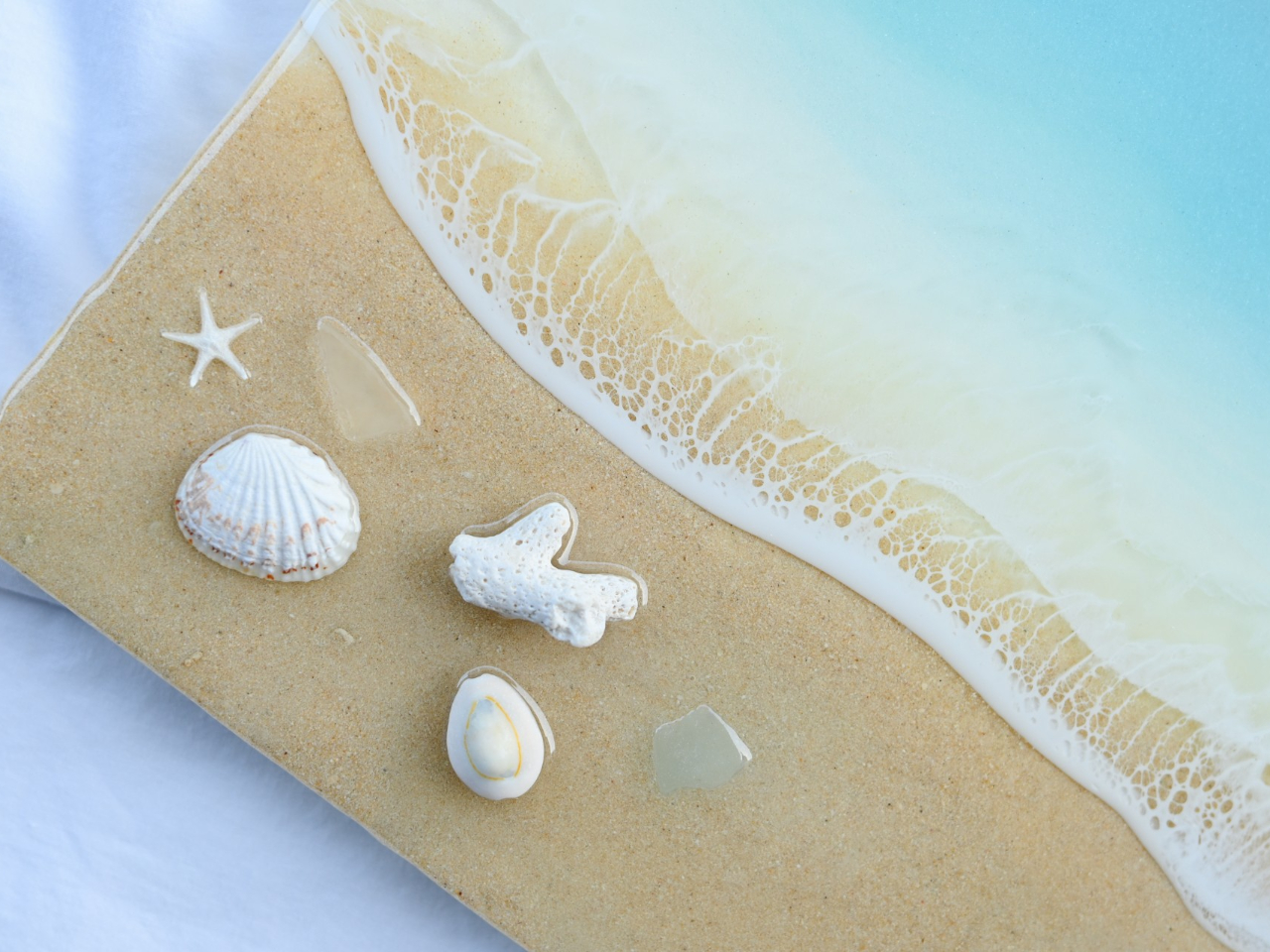 レジンのツヤときらめきで本物の海を感じる作品に仕上げます。