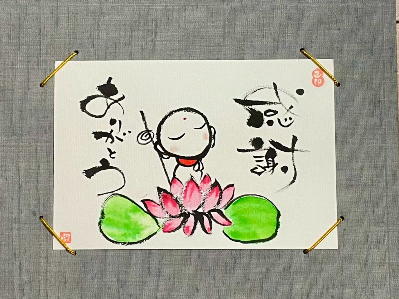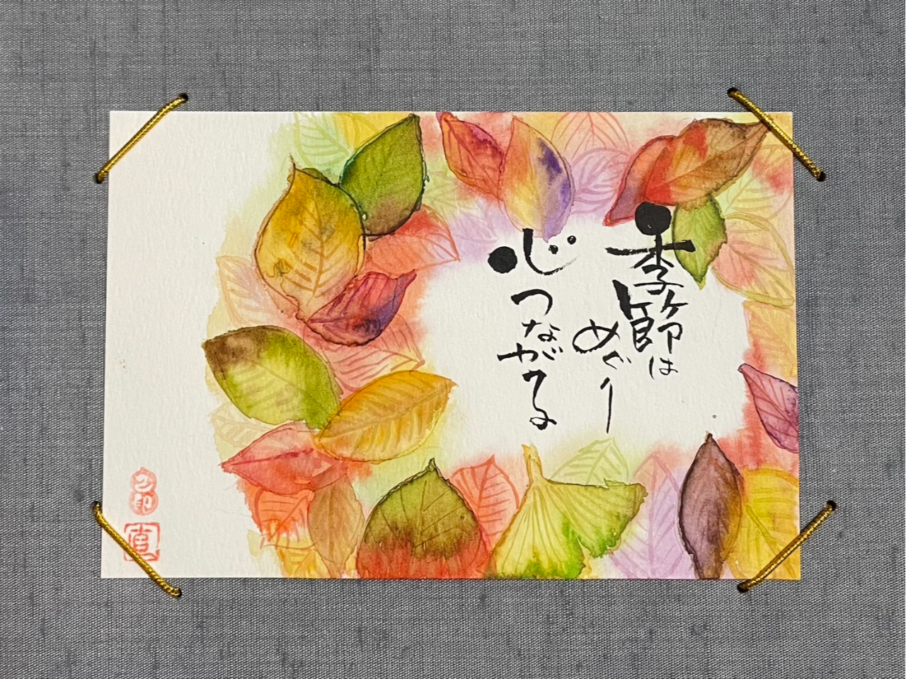 筆ペンで普段とは違った味のある文字を書きます。上手い下手ではなく、描くことで楽しく気分が和やかになれるような葉書作品を3〜4枚仕上げます。