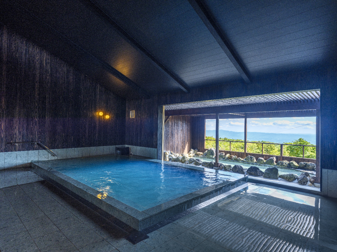 1. 圧巻の絶景露天風呂: 眼下に広がる那須野が原のパノラマビュー。夜には満天の星空、朝には雲海を望めることも。