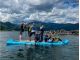 富士山麓の河口湖で最高の景色のなか、家族、友達みんなで巨大サップ体験が楽しめます。