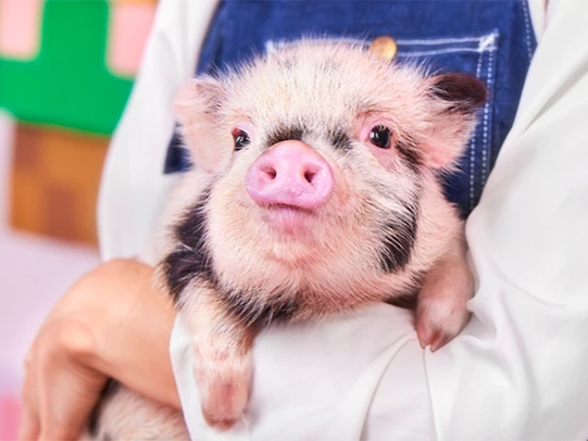 人懐っこいブタさんがそばに寄り添い、癒しと笑顔あふれる特別な時間をご提供します。動物カフェ