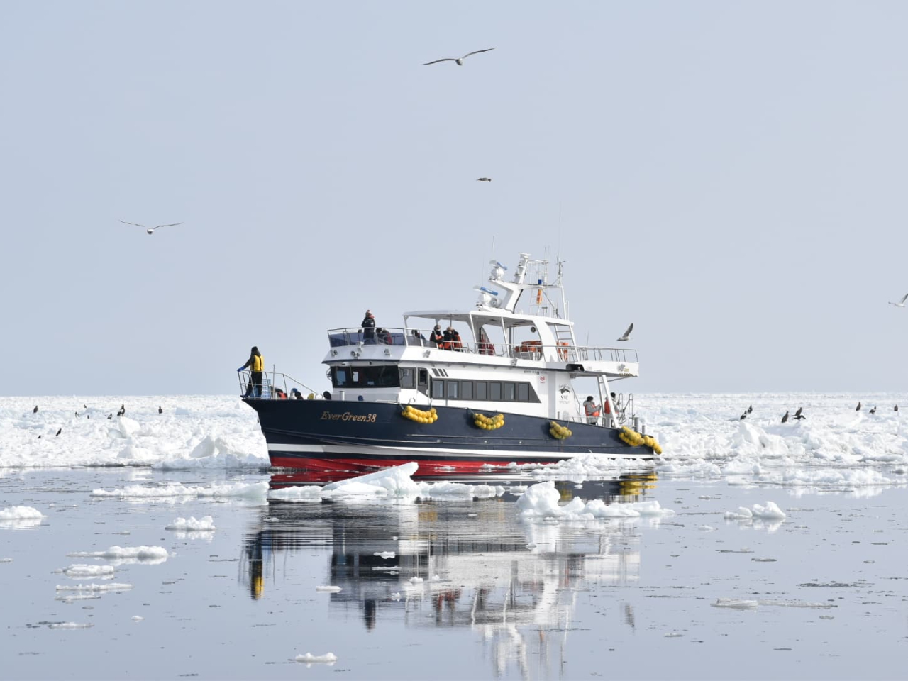 - 羅臼ならではの感動体験♪1月下旬から押し寄せる白き芸術。流氷クルージング!流氷を掻き分けながら、知床に越冬してきたオオワシ・オジロワシなどの鳥達を間近で観察できます!