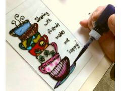- インクが乾くと凸凹になる特殊なエコ絵具で塗り絵のように仕上げるステンドグラス風アートはいかがですか?