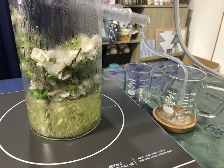 - 家庭用蒸留器で、植物を蒸留する体験ができます。