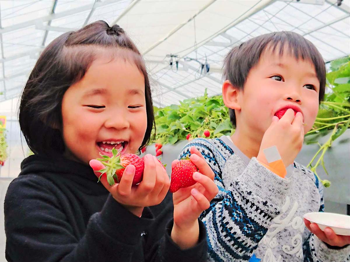 - 五百川駅周辺のいちご狩りで、子供に人気の施設TOP3はまるなかファーム、りょうぜん結、観光農園スマイルファームです。