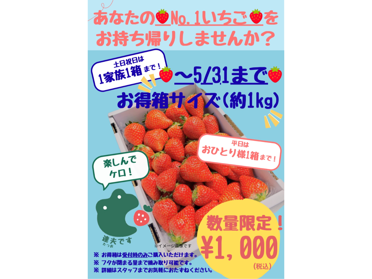 甘くておっきいいちごがとっても美味しかったです 土日は早めに終了することが多いらしいので、早めに迎う...by なおさん