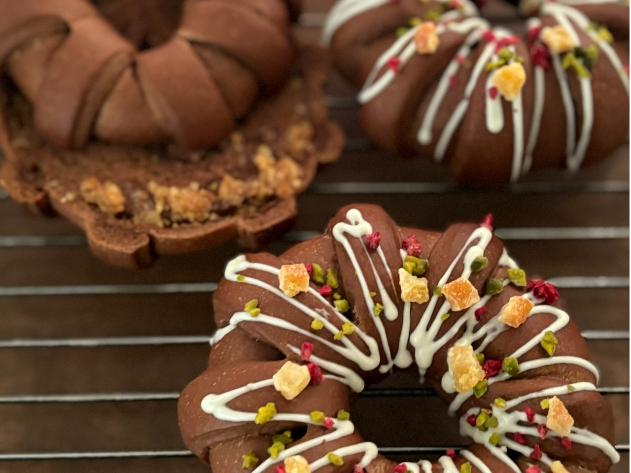 - ●ご自宅で「小さなクリスマスリースパン(ショコラ&プラリネ)」をオンラインで作りましょう! ◆材料は事前にご用意をお願いいたします。 ◆ご自宅でできるオンライン体験です。