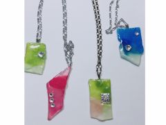 - 板ガラスにお好みのガラスパーツをのせて、素敵なアクセサリーを作ってみましょう。