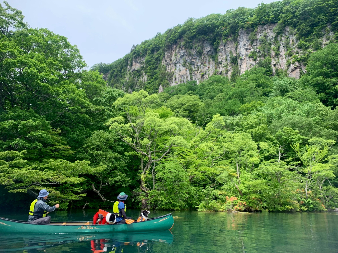 - ガイドが丁寧にレクチャーいたしますので初めての方でも安心!十和田湖の自然を湖上からゆったりと満喫できるカナディアンカヌーツアーはペットと一緒に参加することもできます!