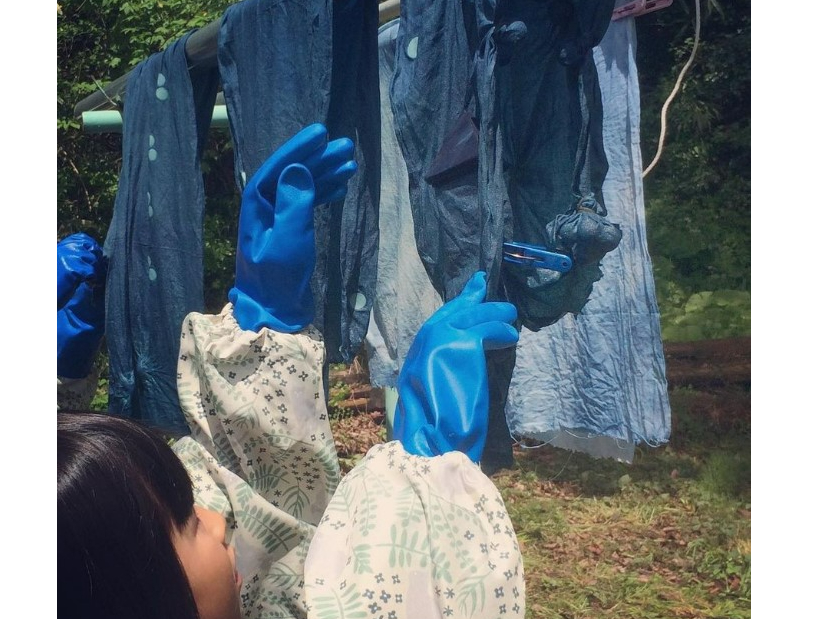 - 山の湧水と日光をたっぷり浴びて育てた藍を使って、自然の力を借りながら行う藍染体験。無心で手足を動かしながら、心まで清々しい色に染められたような気分に!自分の好きな柄、世界に一つだけのアイテムを作ろう