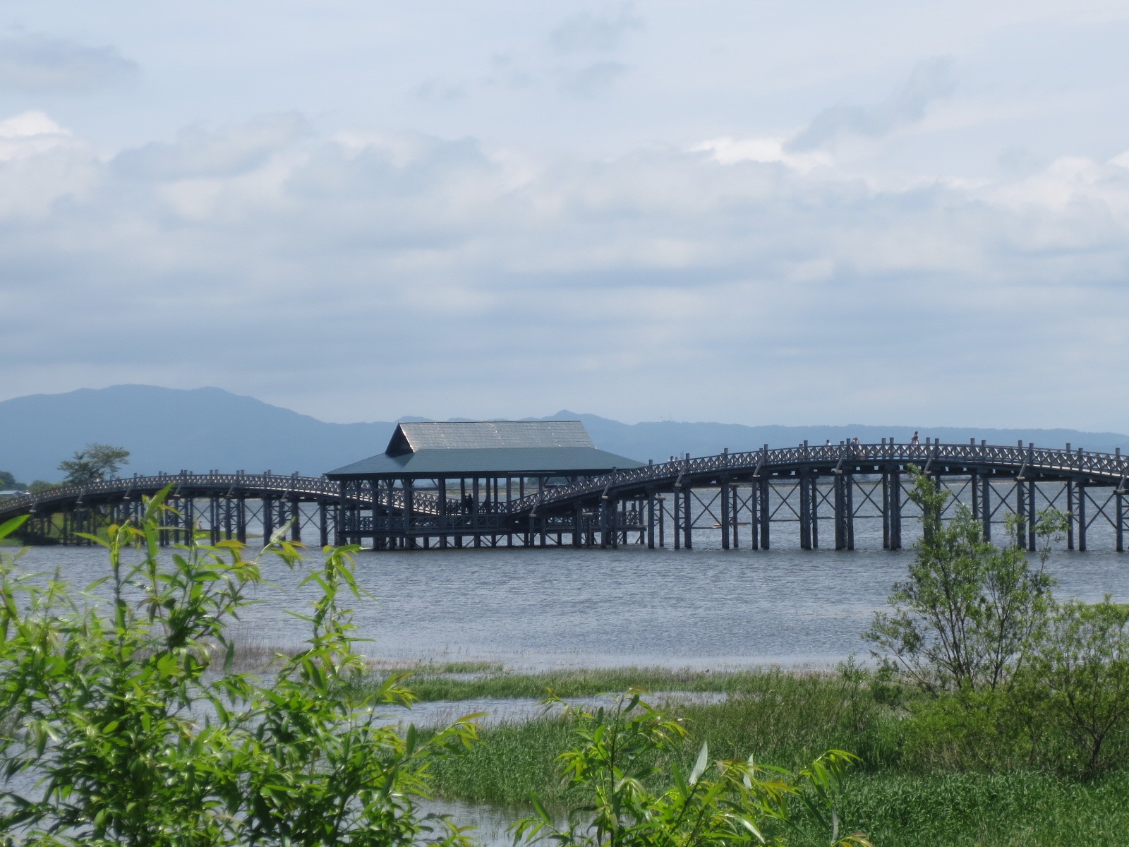 - 日本最大の堤防を誇る人造湖と、そこに架かる日本一の木造アーチ橋「鶴の舞橋」にジャ...