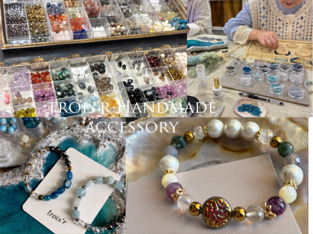 - ●オシャレに作れる天然石ブレスレット製作体験 ●誕生石や今、必要な石を選ぶパワーストーンセラピストのカウンセリングも受けられます ●シリコンゴムブレスレットでピッタリサイズで作れる