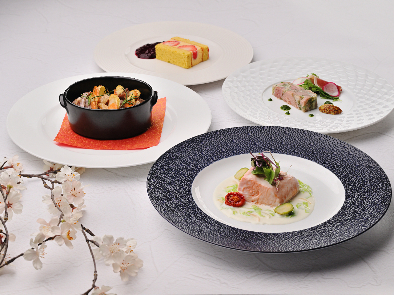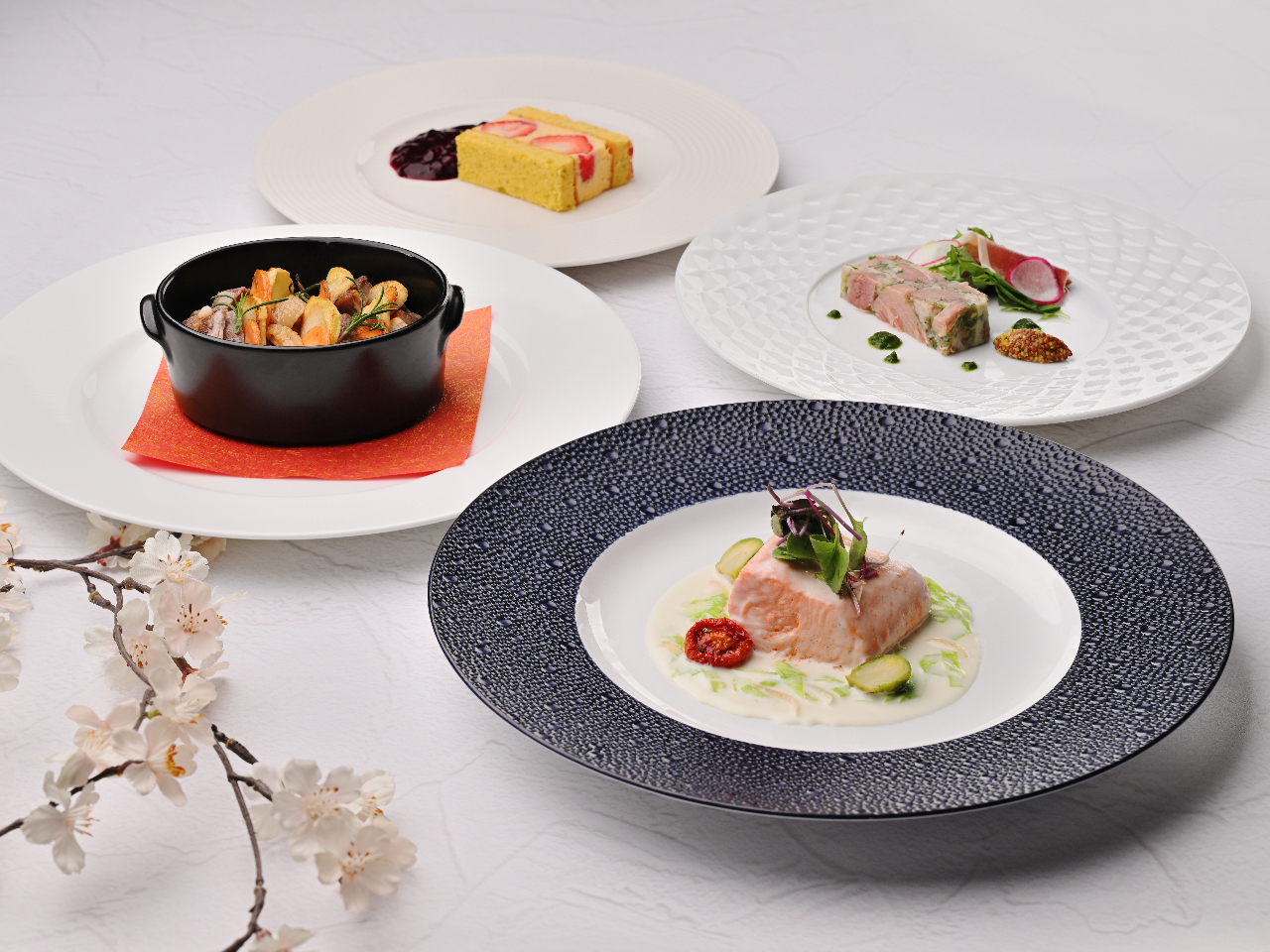 - 銀鮭のヴァプールや北海道牛フィレのグリエなど新たな表情を生み出す春の新作を含む4種類のメイン料理からお好きな1品をお選びください。サステナブル・シーフードを使用した前菜&スープ&パン、デザート付。