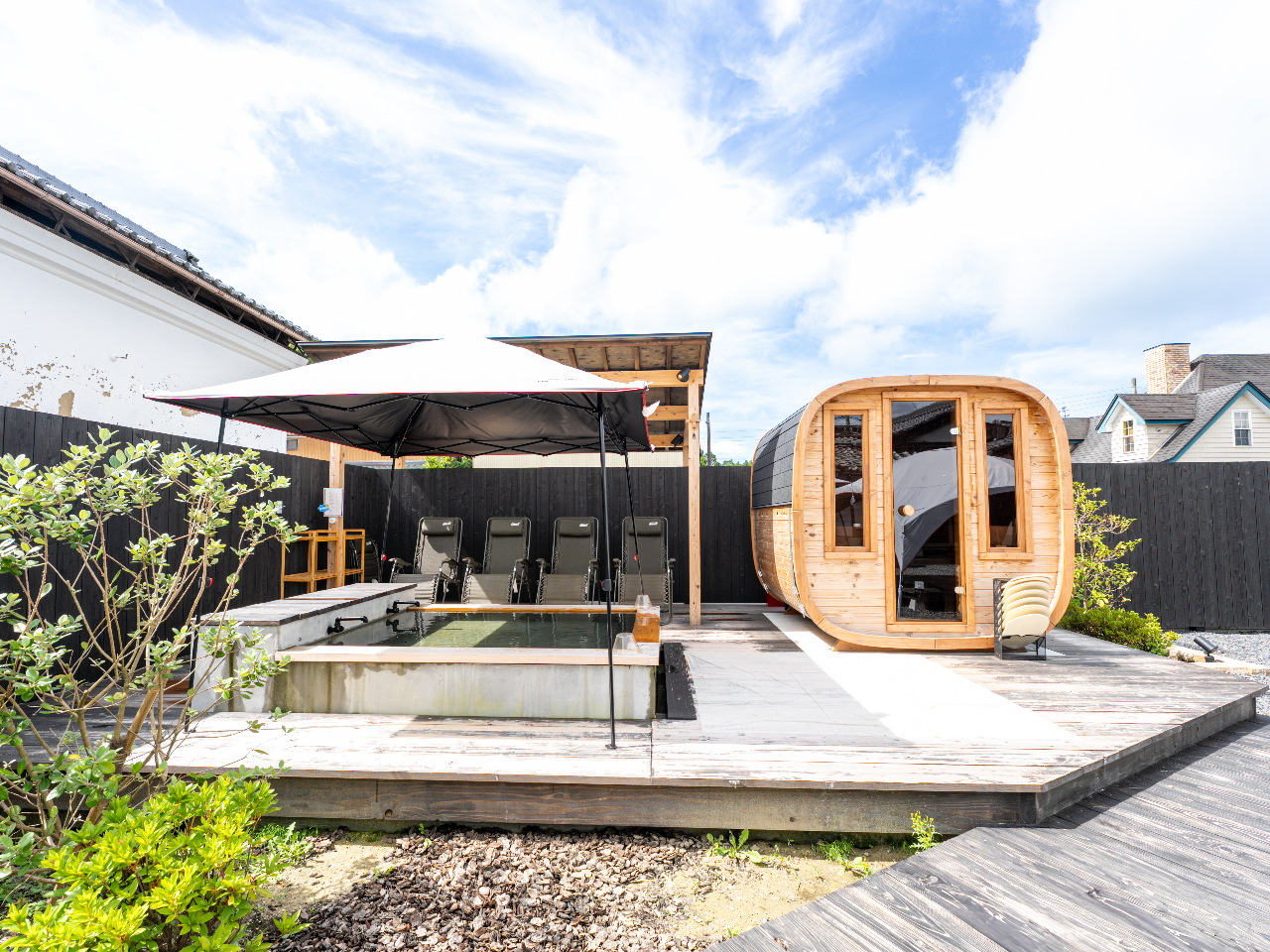 - [1]映え空間|築140年の古民家をリノベした情趣あふれる空間 [2]完全貸切|ドリンク付&各種サウナグッズ無料貸出で手ぶらでOK [3]初心者歓迎|マイルド温度の優しいサウナ&水風呂で初ととのい体験