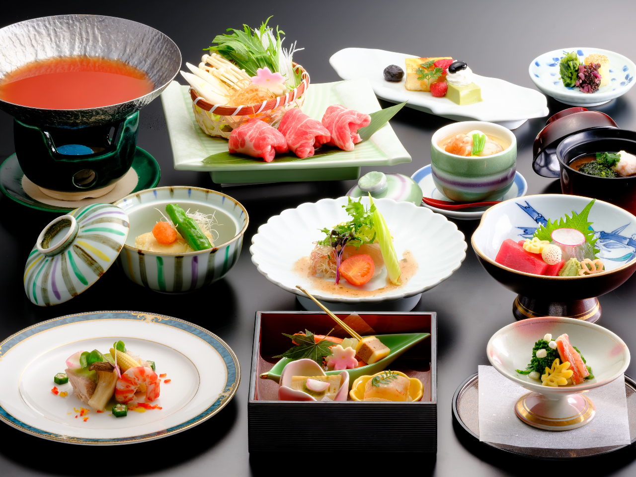 《美作市・湯郷温泉・日帰り》春夏スタンダード会席で温泉と味覚を満喫! 〜トマト出汁の黒豚しゃぶ鍋他〜