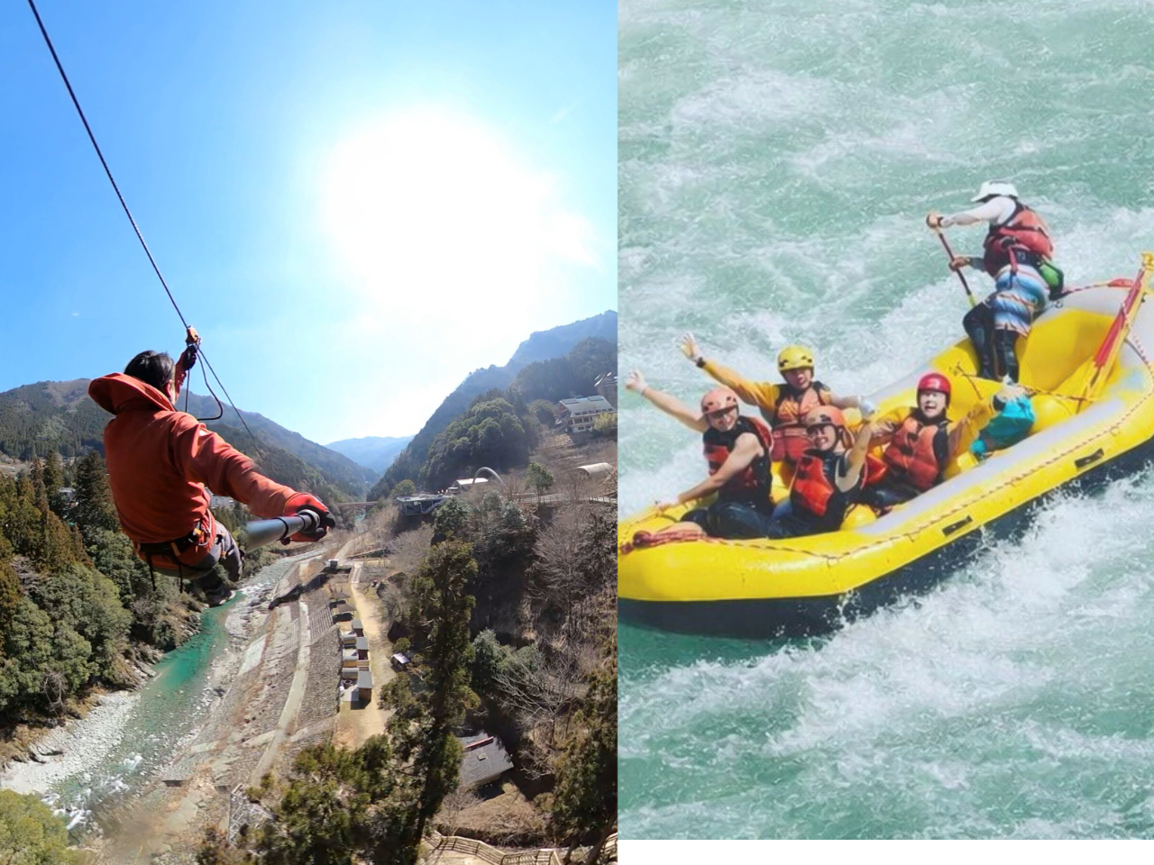 - 日本一の吉野川でラフティングとフォレストアドベンチャー・祖谷体験を1日で楽しめる当社欲張りオリジナルスペシャルコース!1日しか時間はないけど、両方体験したいという方におすすなコース。