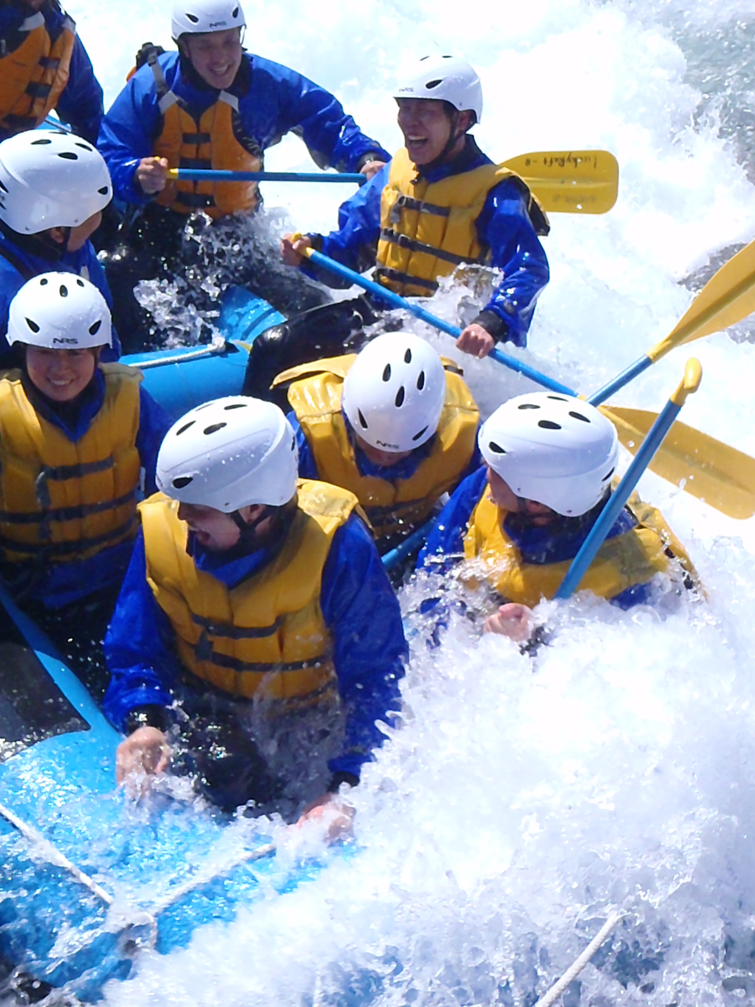 - ●吉野川ならではの激流を楽しむ、長めの半日プランのラフティングです。 ●難所が連続する午後のロングコースは、激しいラフティングを集中的にしたい、という方に特にオススメ。