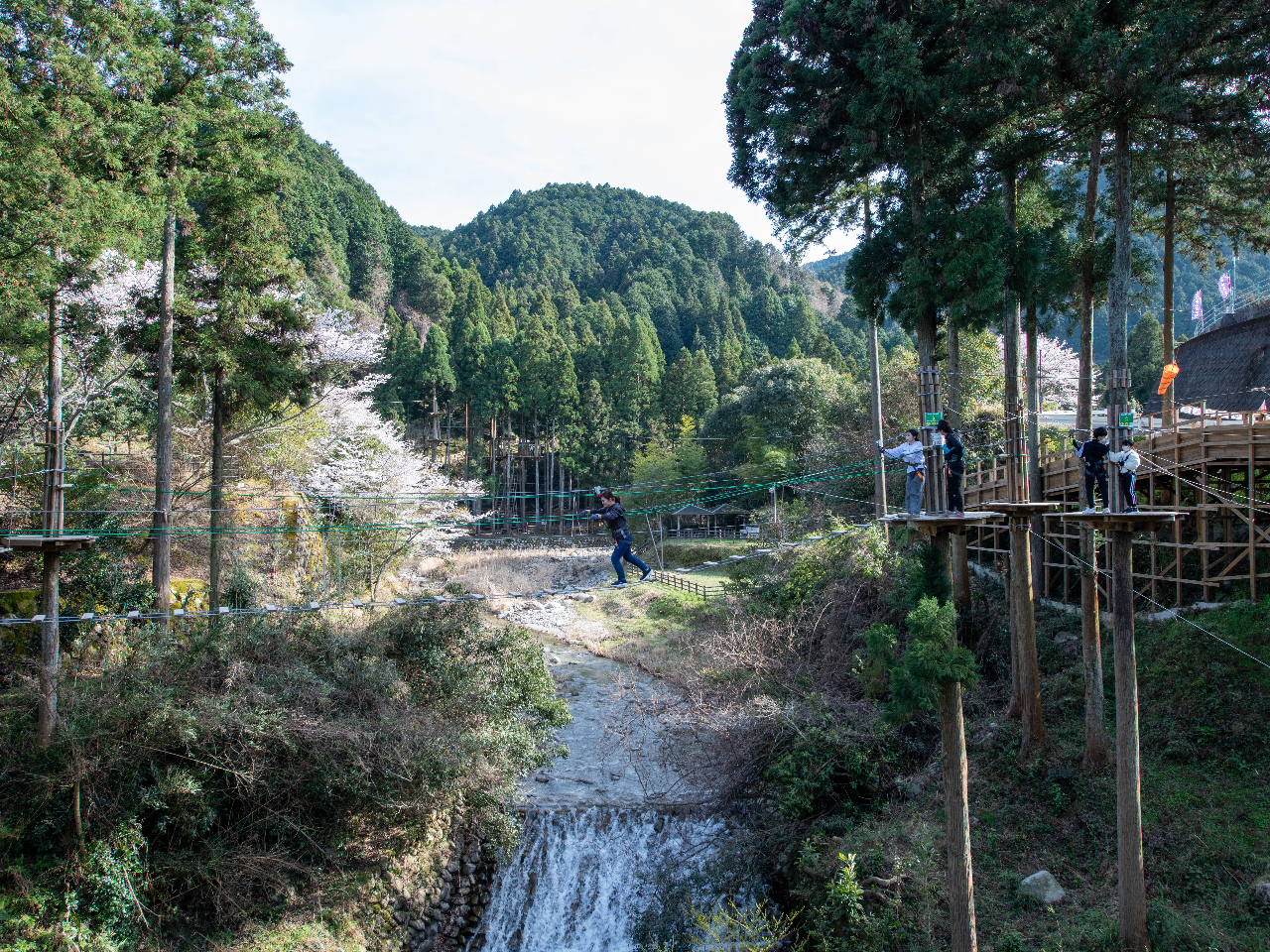 - 大人も子供も夢中になれる、本格的なアスレチックコース! ジップラインが全部で7本、アクティビティは32種類! 大明神川を越えるジップライン、アクティビティはスリル満点!!