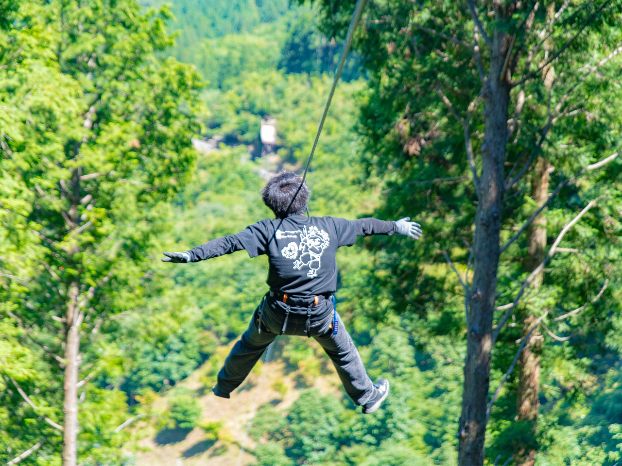 - 大人も子供も夢中になれる、本格的なアスレチックコース! ジップラインが全部で7本、アクティビティは32種類! 大明神川を越えるジップライン、アクティビティはスリル満点!!