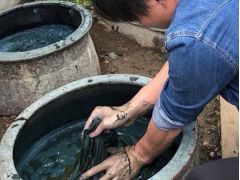 - ≪佐田岬半島≫\天然灰汁発酵藍染/海と空の青が広がる佐田岬で本格的な藍染体験!!...