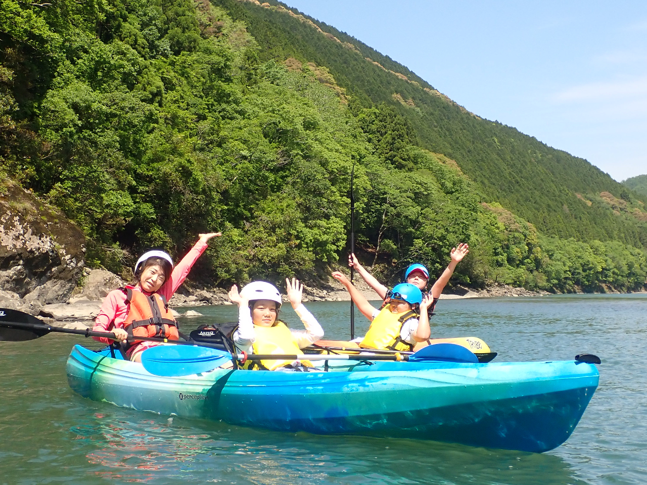 - 日本最後の清流でカヌー体験。お手軽な4キロの川下り。一人乗りのカヌーは小学4年生以上で身長130cm以上、二人乗りのカヌーは保護者同伴で小学生以上のお子様からご参加が可。
