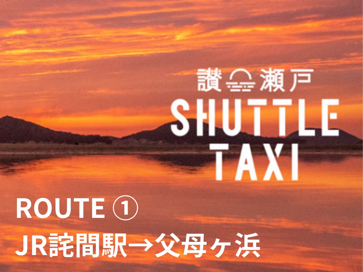 - 「父母ヶ浜→JR詫間駅」行きの乗合型のシャトルタクシー。路線バスより便利&最適なダイヤで観光時間をたっぷり、貸切タクシーよりもリーズナブル。運賃定額で安心。お一人様からご利用OK。平日のみ運行