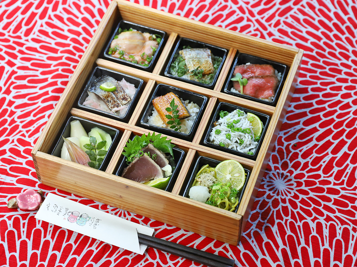 - ●高知の名物ご当地丼が一同に会するご当地重箱御膳。最高の美味を少しずつご提供 ●宿泊客や日帰り貸切風呂利用客限定の重箱料理がランチで味わえる