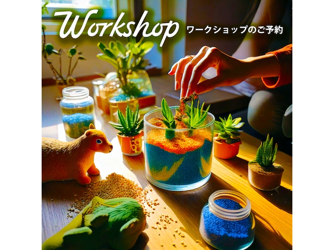 - カラーサンドの虹の砂漠に多肉の森をつくりましょう! カラーサンドで砂模様を楽しみながら苔と多肉植物が成長する過程をお楽しみください。 参加者全員にアクサセリータグを贈呈中!あなたの名前が入ります。