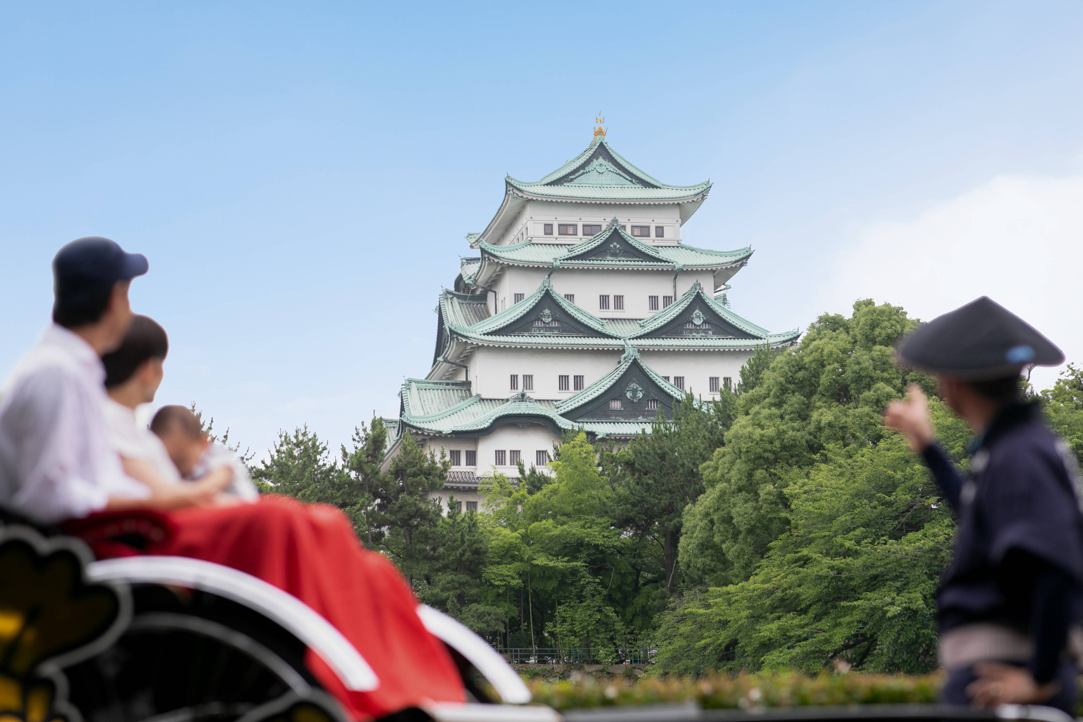- ☆名古屋人力車は、車輪の大きな金シャチが目印☆ 名古屋城周辺を飛び出して、ちょっと遠方への片道コースも可能です。