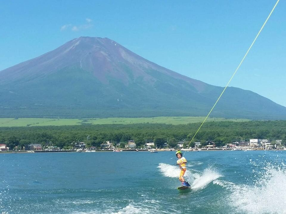 - ウェイクボードとは、簡単に説明すると、水上版スノーボードといったところです。 初心者でもインストラクターが丁寧にサポートするので安心です。 山中湖で富士山を見ながら体験してみましょう!