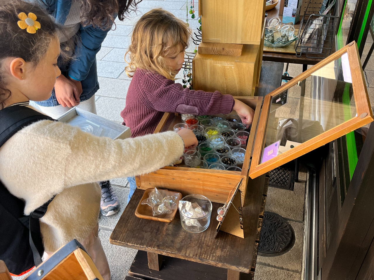 - とんぼ玉とビーズ等のパーツを組み合わせて、「世界で1つ」あなただけのアクセサリーを作りましょう!小さなお子様から、ご年配の方まで幅広い年齢、男女問わずどなたでもチャレンジできます!