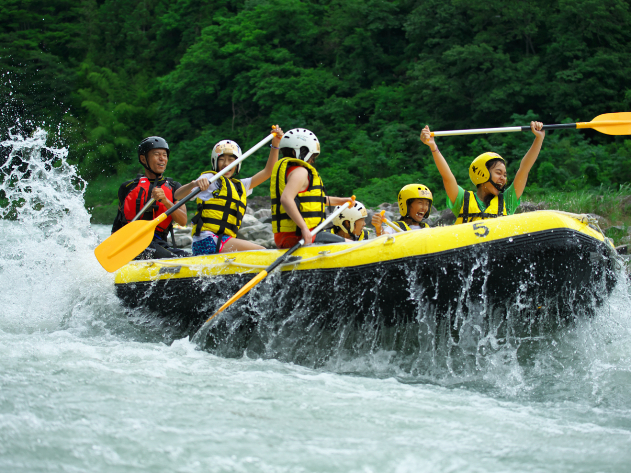 - ラフタのラフティングは少人数制。友人、家族とより充実した休日を過ごしてみませんか?最大2艇(最大受入12名)で思い切り楽しめる!