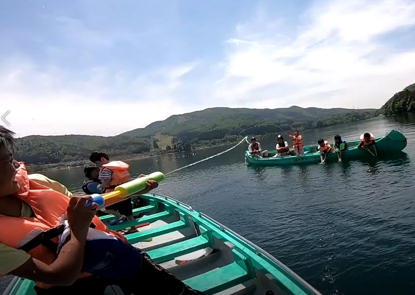 - 興奮度200 %!! 鎌倉時代・室町時代・戦国時代の信濃大町の支配者仁科氏に仕えた仁科忍者の忍術を使い敵のポイに穴をあけます。青木湖でボヤジャーカヌー・カヤック・ローボートなどに乗り、水鉄砲で対戦。