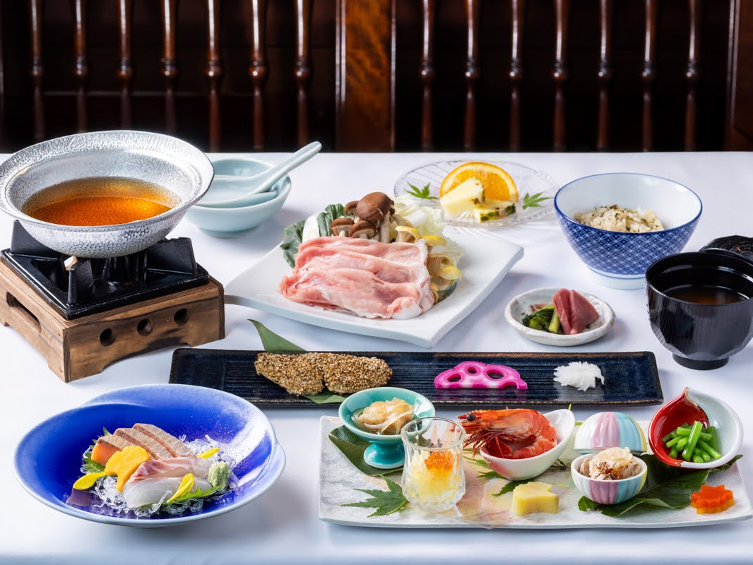 - 板長厳選の季節のおまかせ会席 地元食材をふんだんに使い季節を感じさせる色とりどりの料理が並びます。