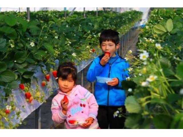 - ☆最大5種類のおいしいちごを食べ比べ! ☆車いすやベビーカーでも楽しめるハウスと、有機質栽培のハウスの2種類があるから安心♪ ☆毎月15日はサービスデー!15%OFFになります!