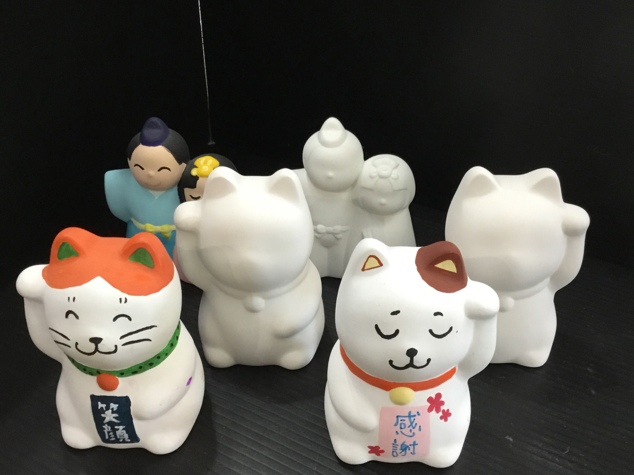 - ポーズの異なる招き猫、お好きな本体を選んで楽しく色塗り絵付け体験!立体なので一味違ったぬり絵の楽しさが味わえるかも!?