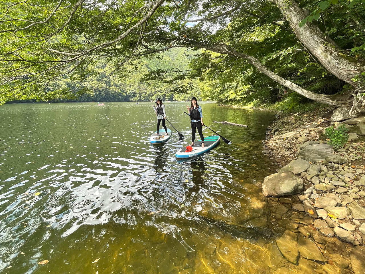 - 青い湖でのSUP体験|アウトドアならアイリーオンで楽しめるお勧めのプランが満載|四万湖のSUP