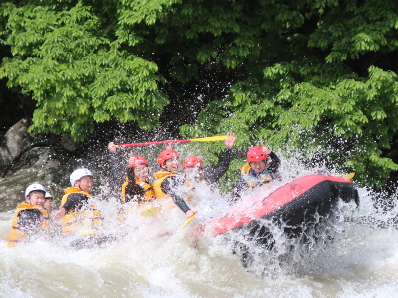 - やっぱりラフティングは楽しさが一番!毎日一番楽しめるコースを選んでツアーを実施!少人数!追加料金無し!お値段以上でのんびりラフティング体験を楽しむならココ!写真はもちろん無料!
