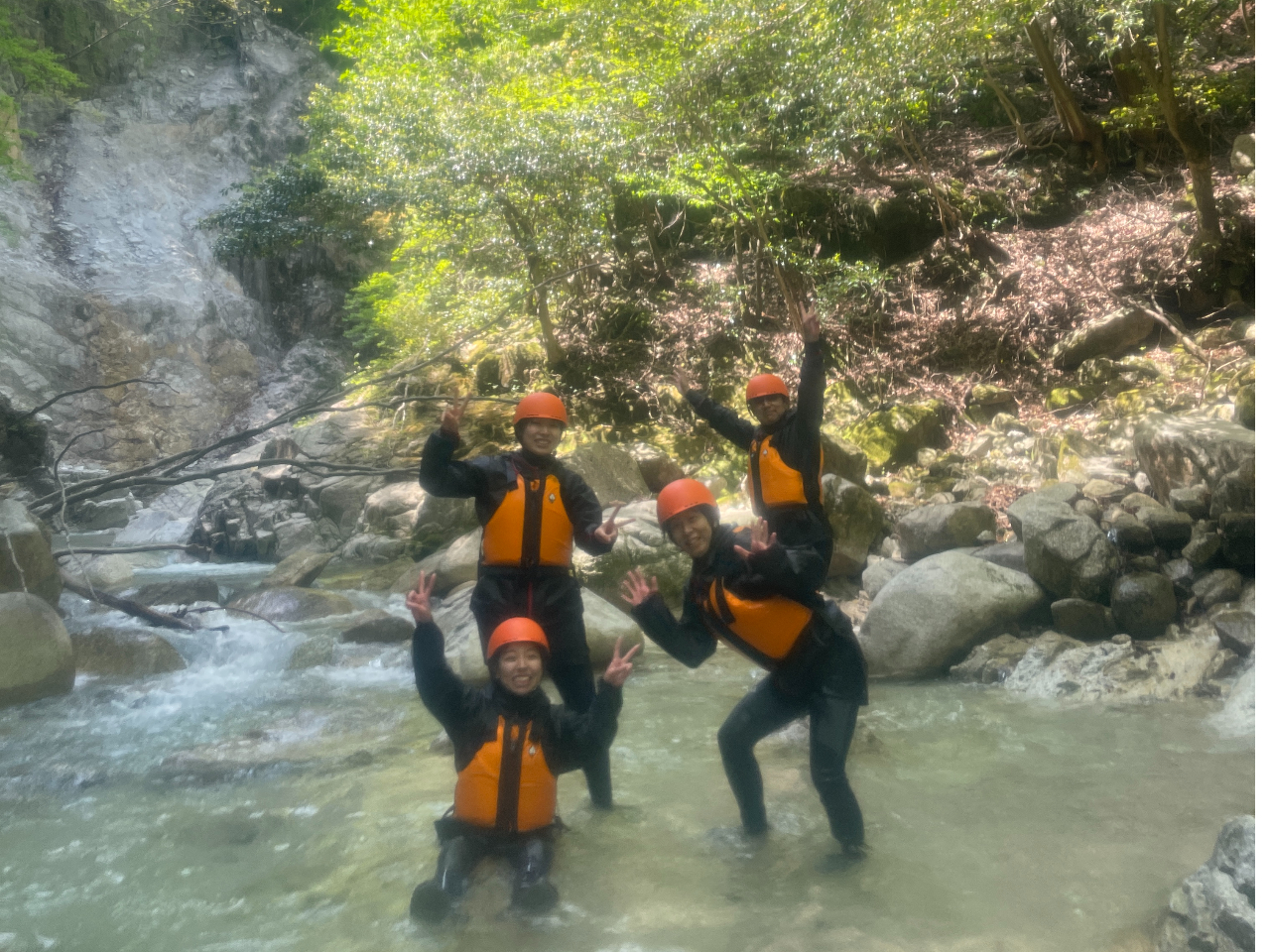 - 手付かずの自然が残る南河知谷で不動滝を目指します♪ 滝をよじ登り、流れに逆らって泳ぎ、滝壺で遊び進むと圧巻の滝がお出迎え! 帰路はウォータースライダーや飛び込みなどでシャワークライミングを楽しもう!